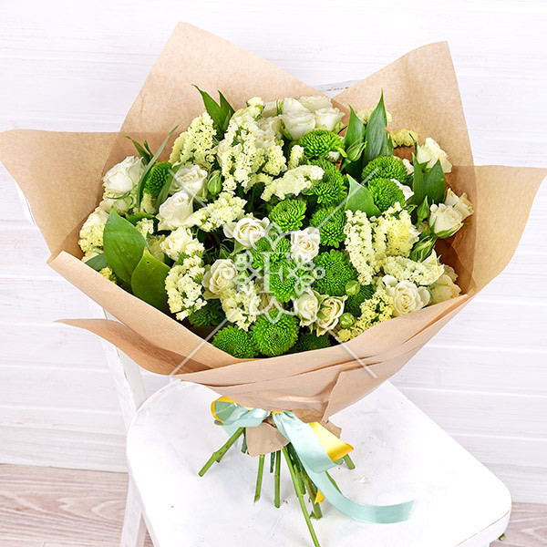 Нежность, романтику  и искренние чувства  поможет передать этот  прекрасный букет в молочно-зеленых тонах! Он будет уместен и  в качестве подарка к любому поводу и как комплимент для любимой, сестры, мамы или коллеги!